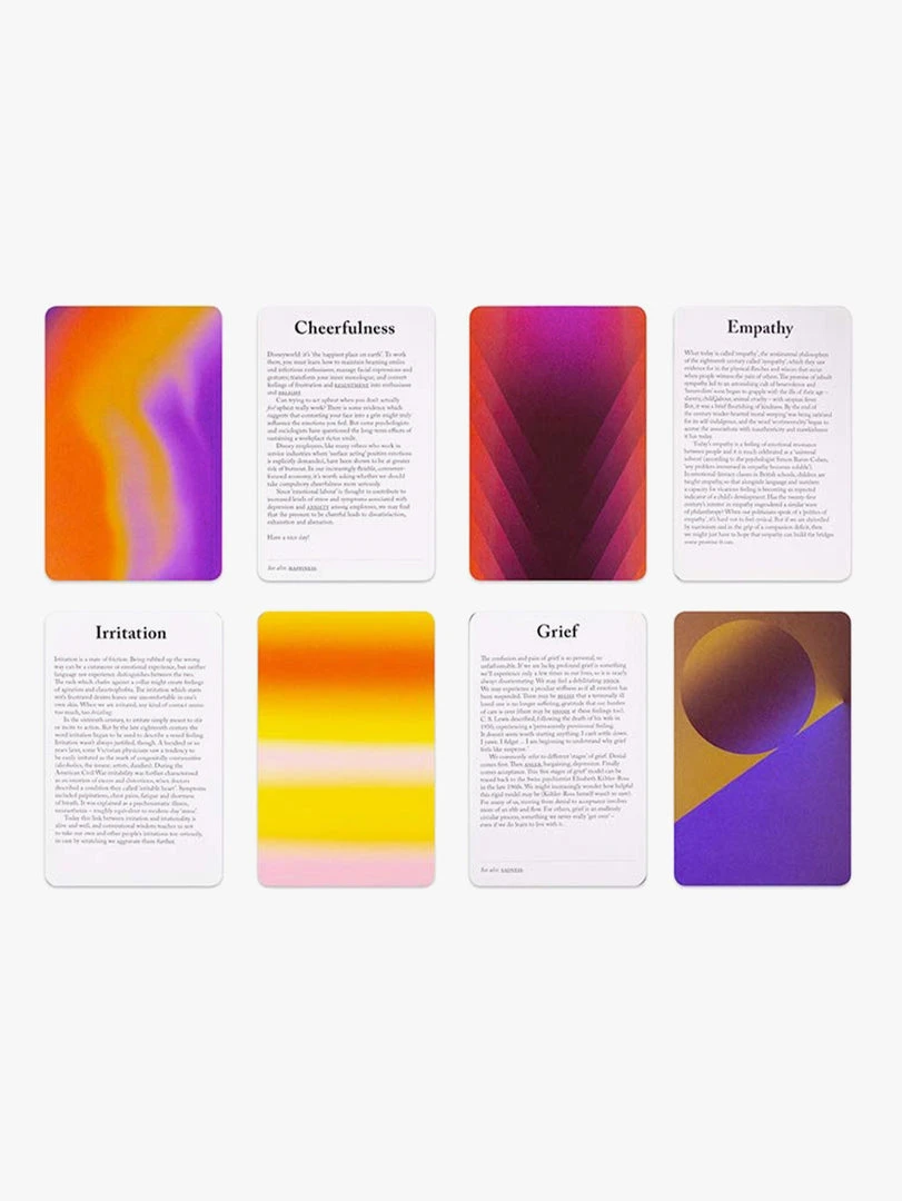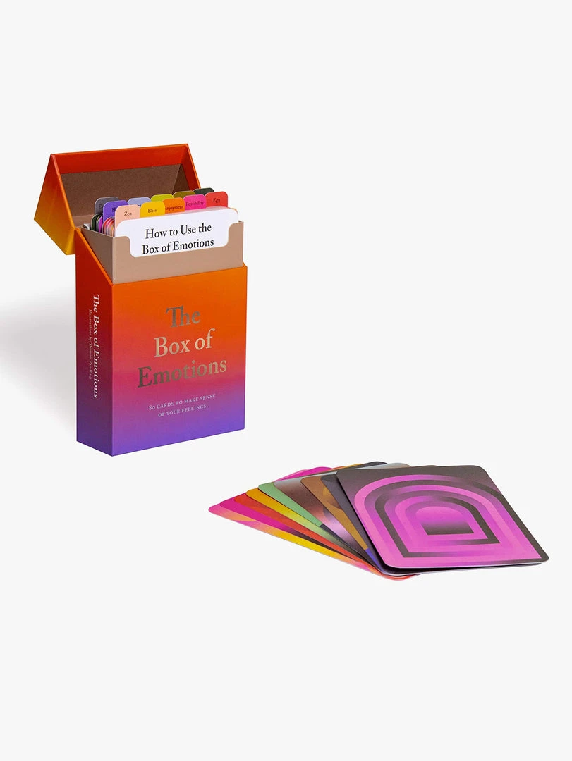 Dip into The Box of Emotions to find the perfect expression of how you feel. Each of the 80 cards contains a mini-essay on a different emotion on one side and a mesmerizing colour pattern on the other. Learn more about yourself and what makes your fellow beings tick, from anger and worry to empathy and courage. And with a host of less familiar emotions – dépaysement, fago, and litost among them – you may discover a whole new way of being.