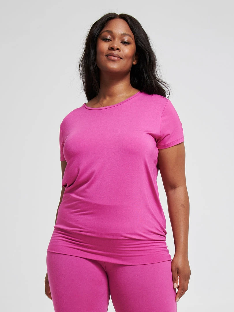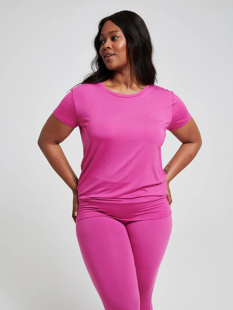 If you love yoga or Pilates then you need this tee in your life. Made with seriously soft bamboo fabric it feels amazing next to your skin. A classic tee shape with an elegant back dart detail and a fitted waistband – so it won’t ride up in even your toughest class.