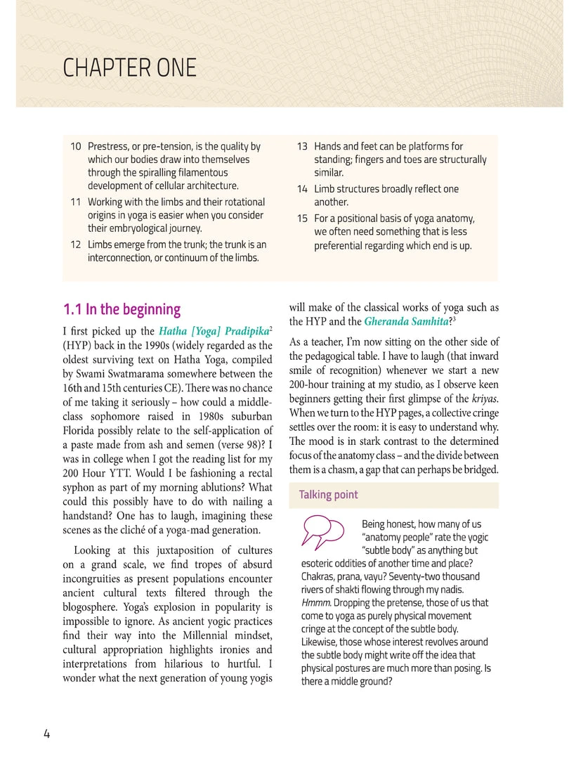 This book sets out to link theory with practice, all at a conversational level richly illustrated with full-color photographs and drawings that bring the biomotion to life for practitioners and teachers of yoga. This book for anyone seeking to simplify the parts-list pedagogy of classical anatomy with contemporary research in fascia literature for an integrated approach especially suitable to postural yoga.