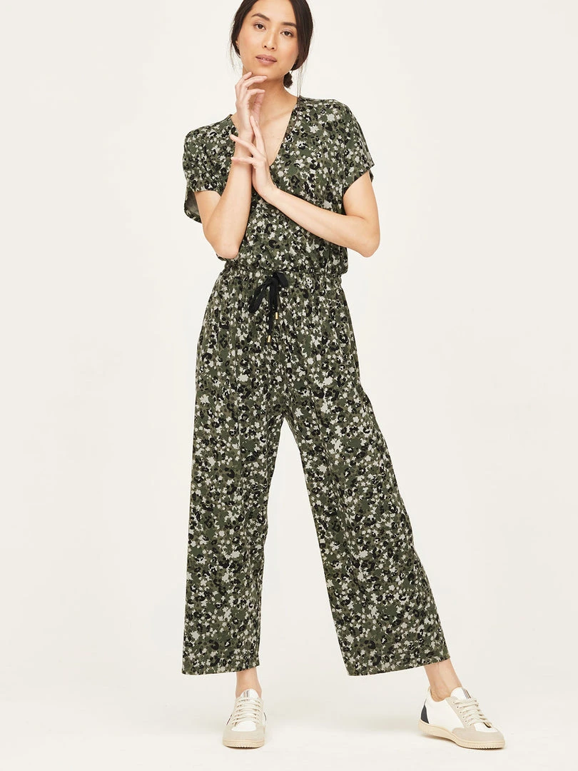 The fabric is Thought’s signature super soft, bamboo and organic cotton blend jersey – stretchy and breathable. The jumpsuit is a relaxed fit with a fully elasticated waist, culotte leg shape for the ultimate in comfort and style. Print inspired by the delicate mix of flowers found in our surrounds at home.