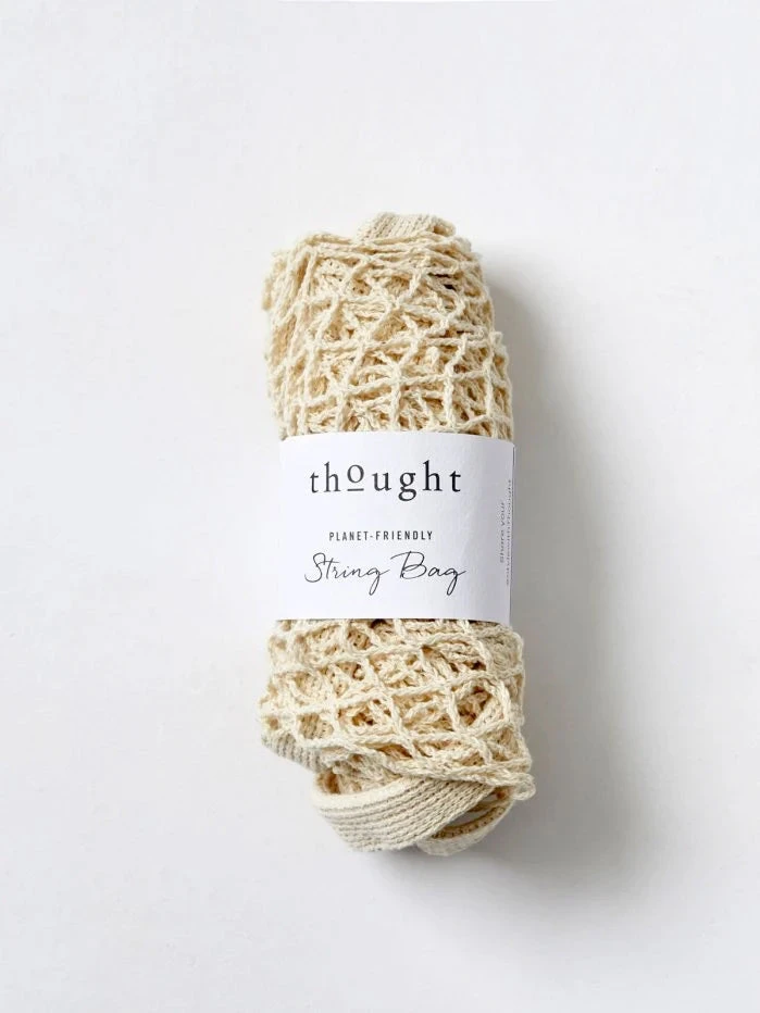 In a strong, supple organic cotton fabric, this string bag is your simple, sustainable answer to a more plastic free lifestyle. It has long handles and Thought branding, perfect for your weekly grocery shop.