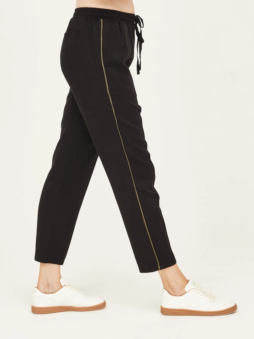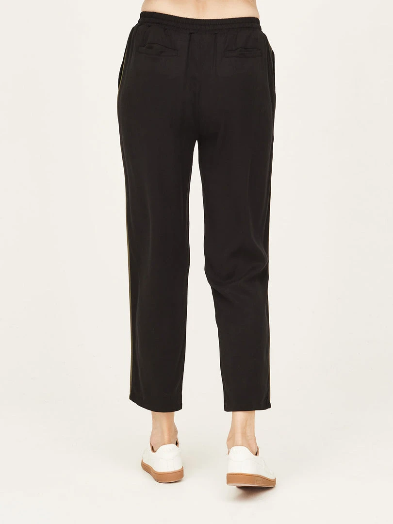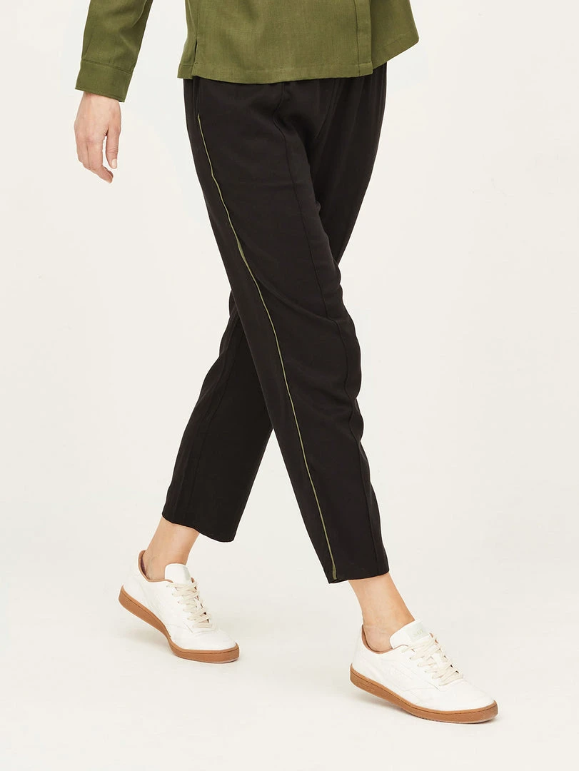 These trousers are a new favourite for the season. They’re crafted from Thought’s brand new fabric: a luxurious blend of woven Tencelâ„¢ and bamboo, making them super-soft and breathable. The front pleat and thin side stripe creates a sports luxe feel, giving them the ability to look smart or casual depending on how you style them.