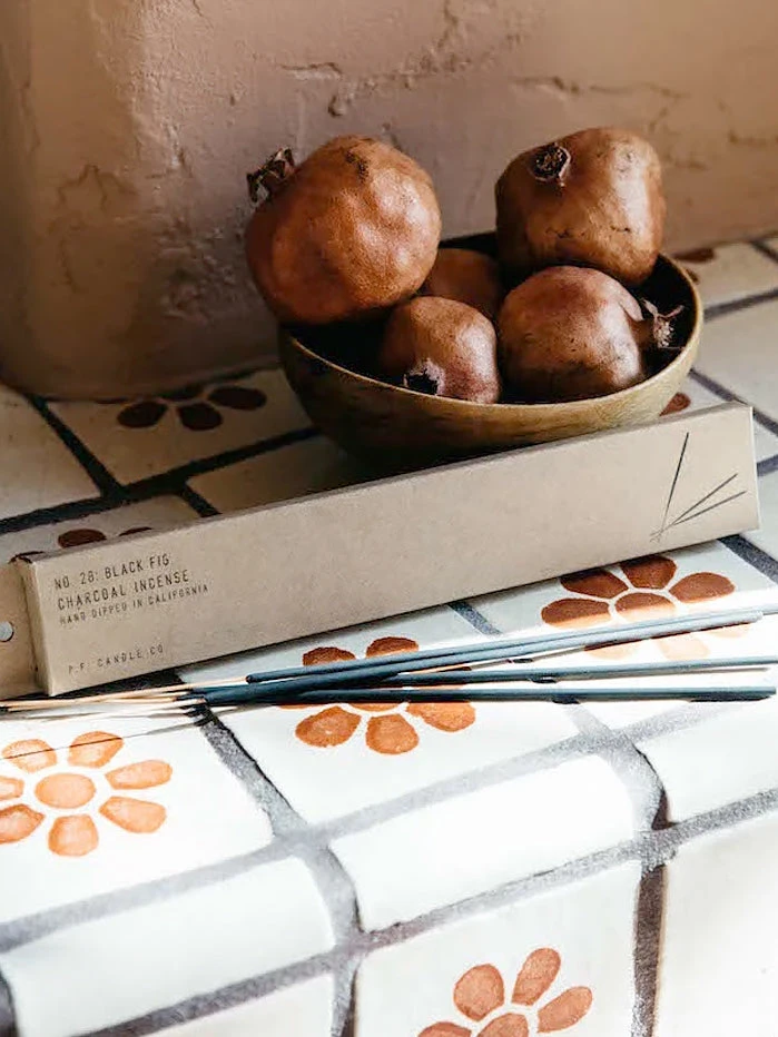 P.F.’s charcoal-based Incense is hand-dipped in their studio and packaged in kraft sleeves. Incense quickly transforms a room: transformative smoke uplifts the space while the signature scents linger for hours even after extinguishing.