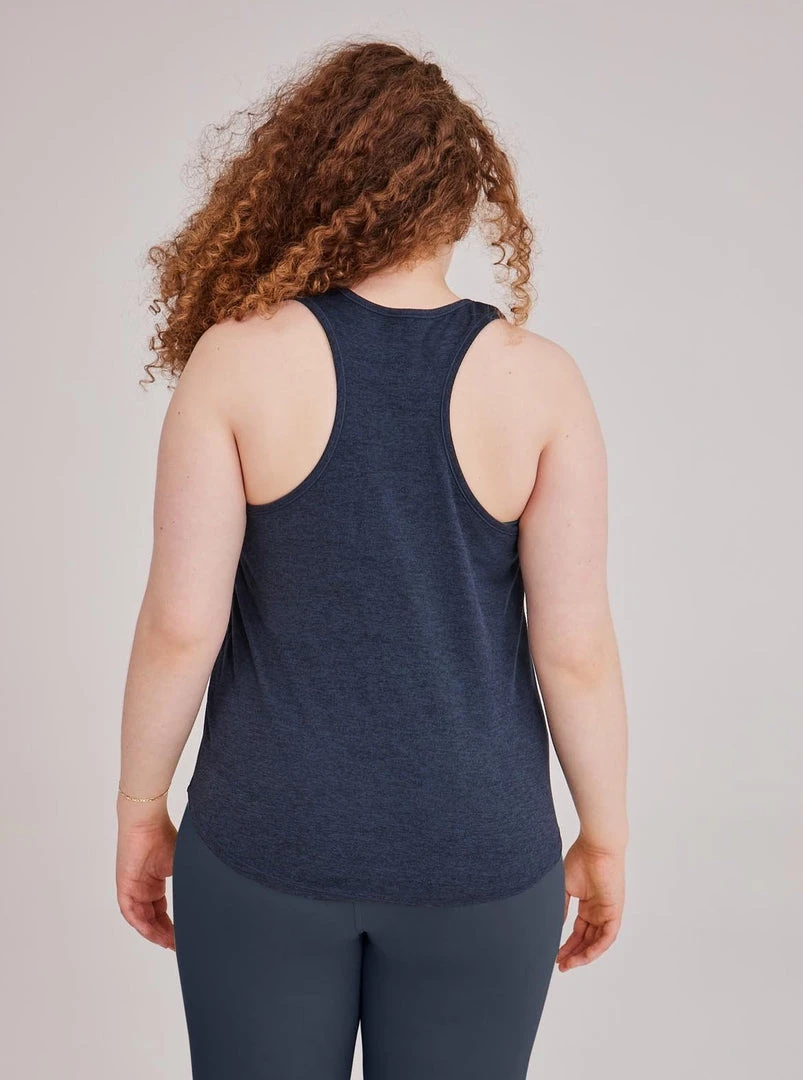 Nice, and easy. A relaxed workout tank made from recycled water bottles and recyclable when you are finished with it (a long, long time from now).