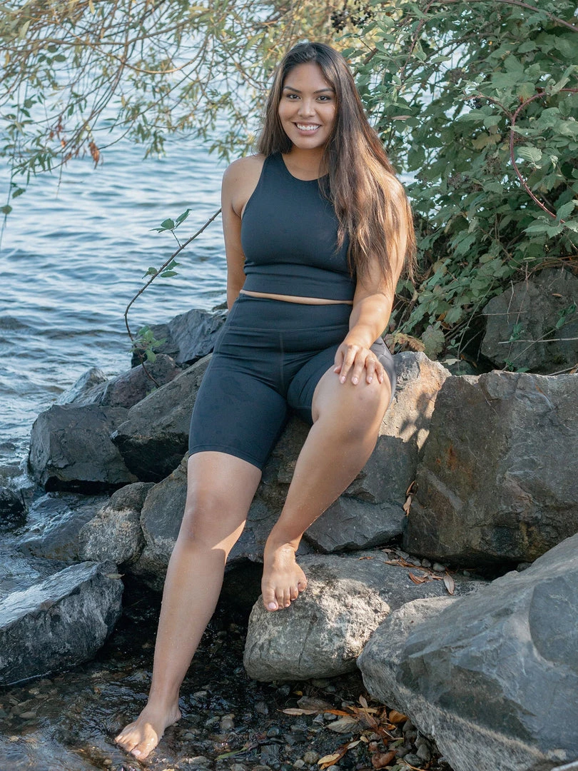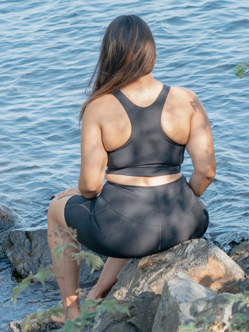 The Dylan Bra is an extra versatile longline sports bra slash crop top that’s designed with a contoured racerback so you can move around without feeling too constricted because nobody likes that. It also has a high neck that keeps you covered and looks really good layered under or over lower-cut things. Because who doesn’t love a good layer?