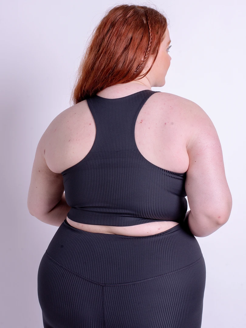 A ribbed version of Girlfriend Collective’s beloved Dylan Tank Bra. Complete with a high neck, longline design, and compressive support.