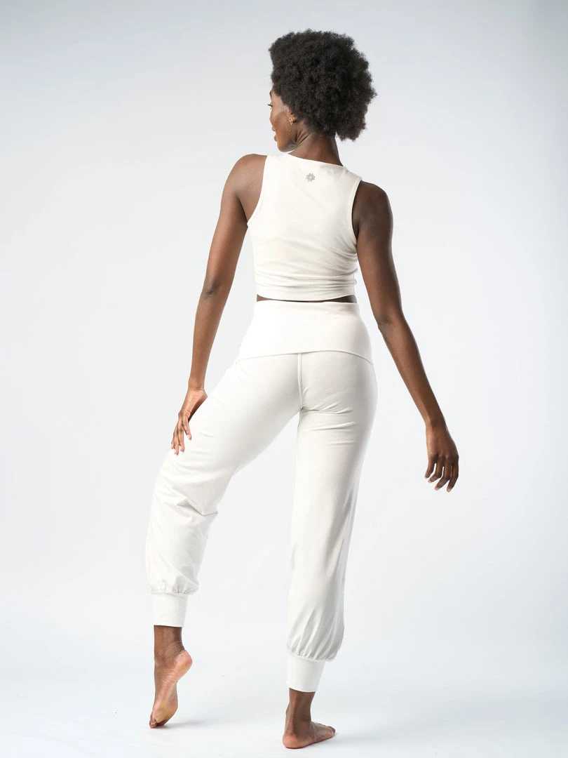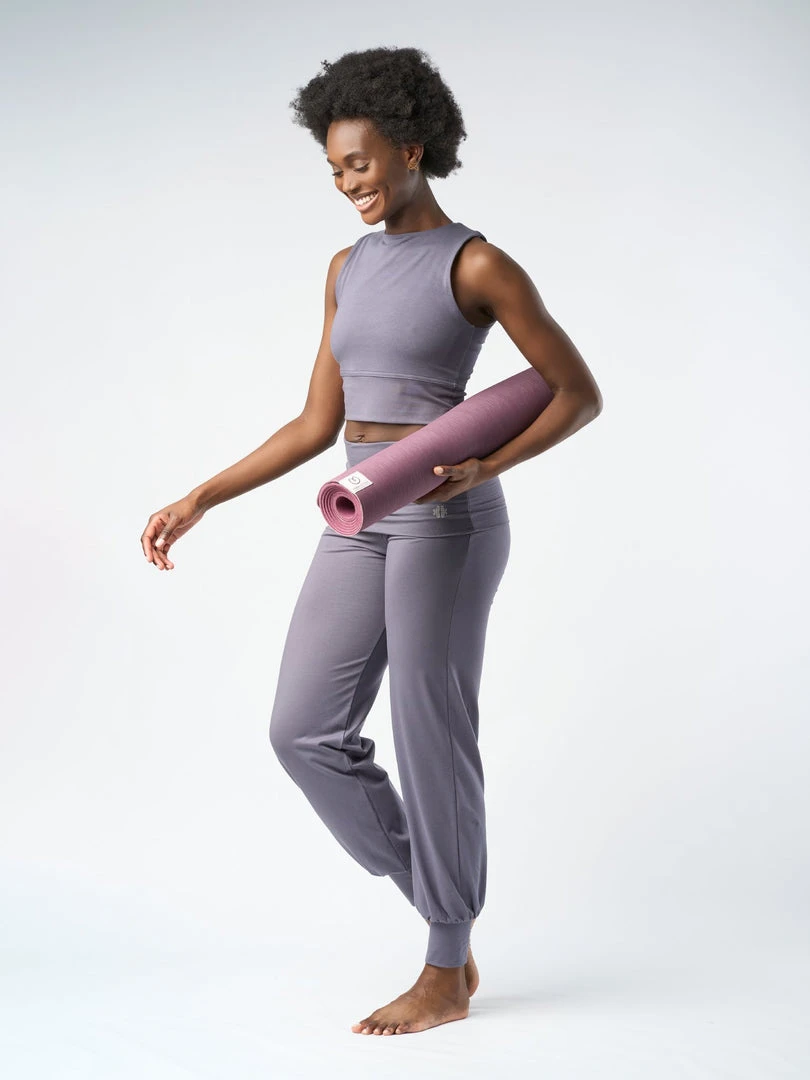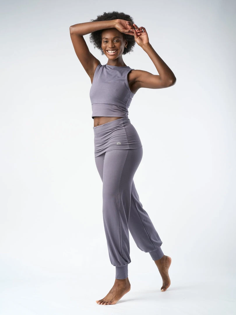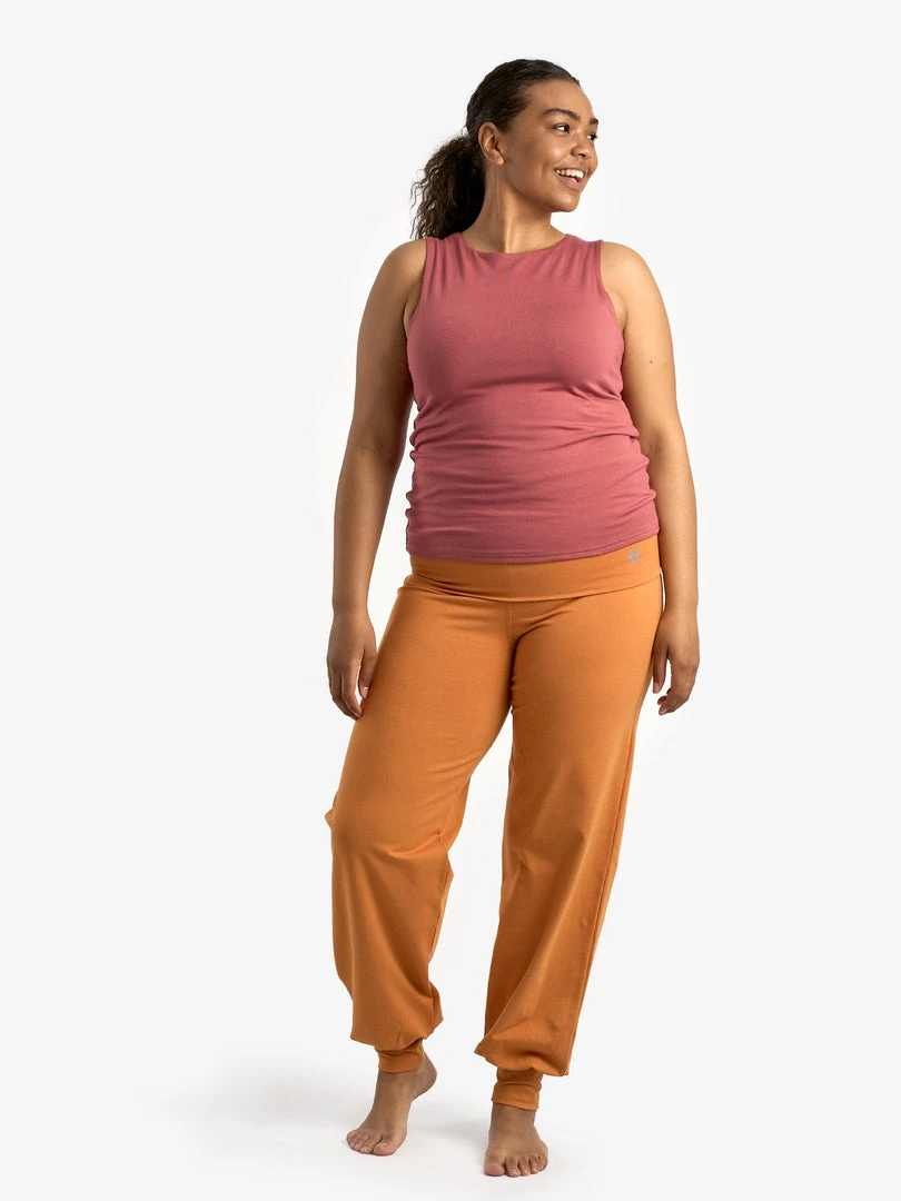 Our Aspire harem pants are designed with a deep and comfy fold over waistband to keep you warm and unrestricted around the vital central organs, allowing you to move with confidence or slouch in style!