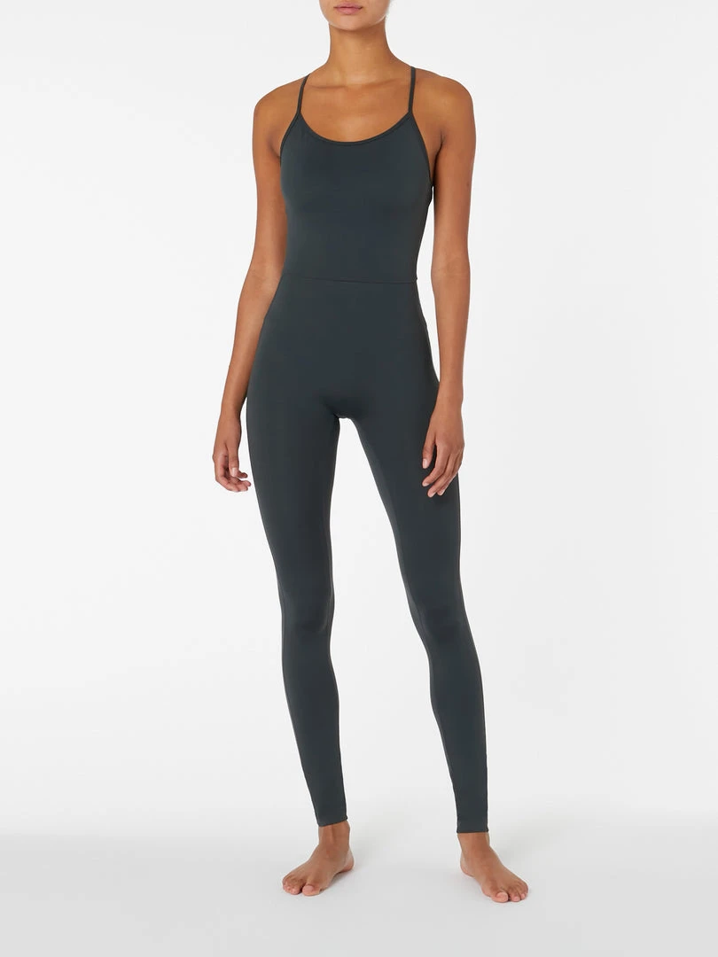 Flow into your downward dog seamlessly in this full length bodysuit from Frost Body. It comes with a crossover back detail, thin straps and power mesh insert. Featuring reflective ‘i am strength’ affirmation graphic on ankle. This easy to wear, all in one piece is great for layering and has a flattering fit.