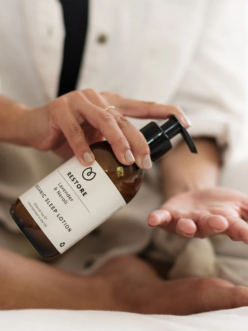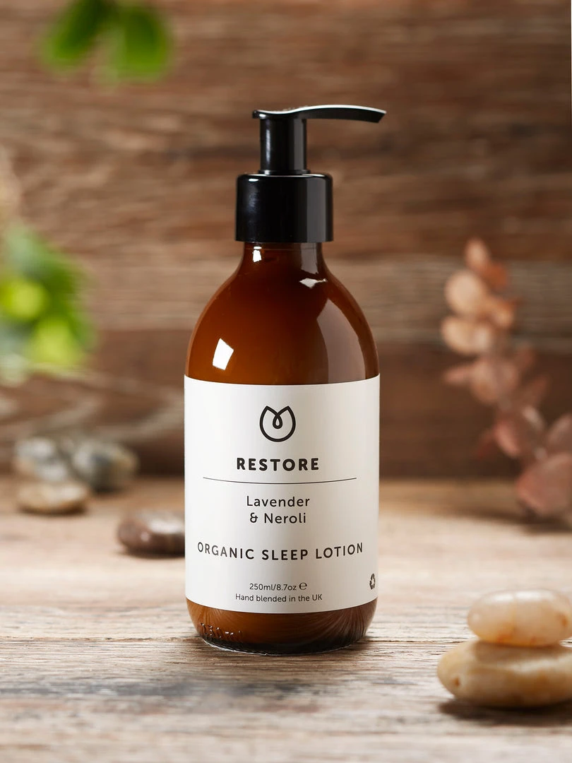 Containing all natural and organic ingredients that support your sleep such as organic lavender oil you’ll be guaranteed to feel restored and renewed upon waking. Our Restore sleep lotion blend works like a dream by soothing your skin and calming your mind after a long day.Â