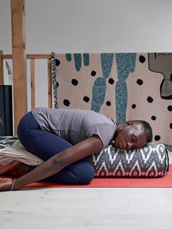 - as a supportive seat during Easy Pose, helping to maintain a straight spine
