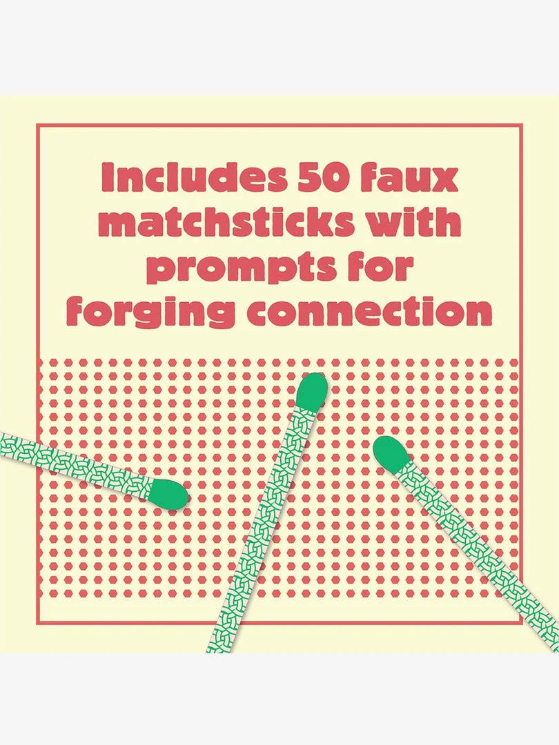 This shimmering matchbox inspires meaningful connections. Inside are 50 faux matchsticks featuring prompts for forging new friendships, deepening existing bonds, and encouraging social engagement.