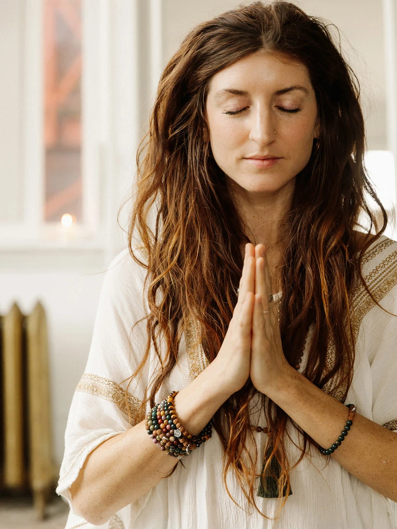 Malas are hand-knotted between each bead while Bracelets are hand-strung. Hand-knotting is a traditional way of making mala necklaces, and is meant to help ease your meditation practice. This piece was and made by a female artisan who was provided fair wages and a safe and supportive working environment.
