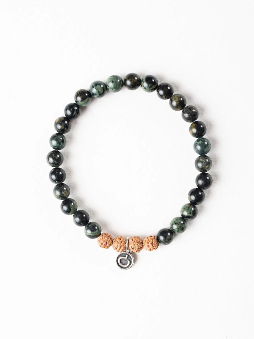 Rudraksha seeds grow inside of what look like blueberries on trees South East Asia. In Buddhism and Hinduism, the beads are believed to provide inner calm, peace, and free one from negative thought. The beads get darker over time as they absorb your oils and energy. This is thought to strengthen the rudraksha.