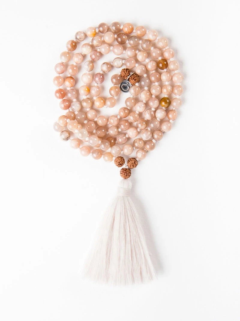 Malas are hand-knotted between each bead while Bracelets are hand-strung. Hand-knotting is a traditional way of making mala necklaces, and is meant to help ease your meditation practice. This piece was and made by a female artisan who was provided fair wages and a safe and supportive working environment.
