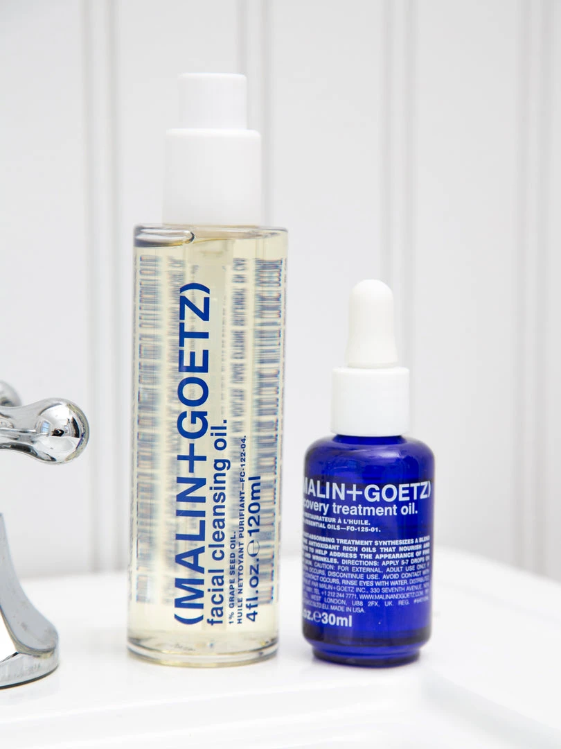 Malin+Goetz deep cleansing oil thoroughly purifies skin and removes makeup with a blend of grapeseed, avocado and olive oils. It emulsifies with water into a gentle milk, thoroughly cleansing skin of impurities and rinsing residue-free, and nourishes skin with calming lavender and eucalyptus oils, as well as vitamins A and E.