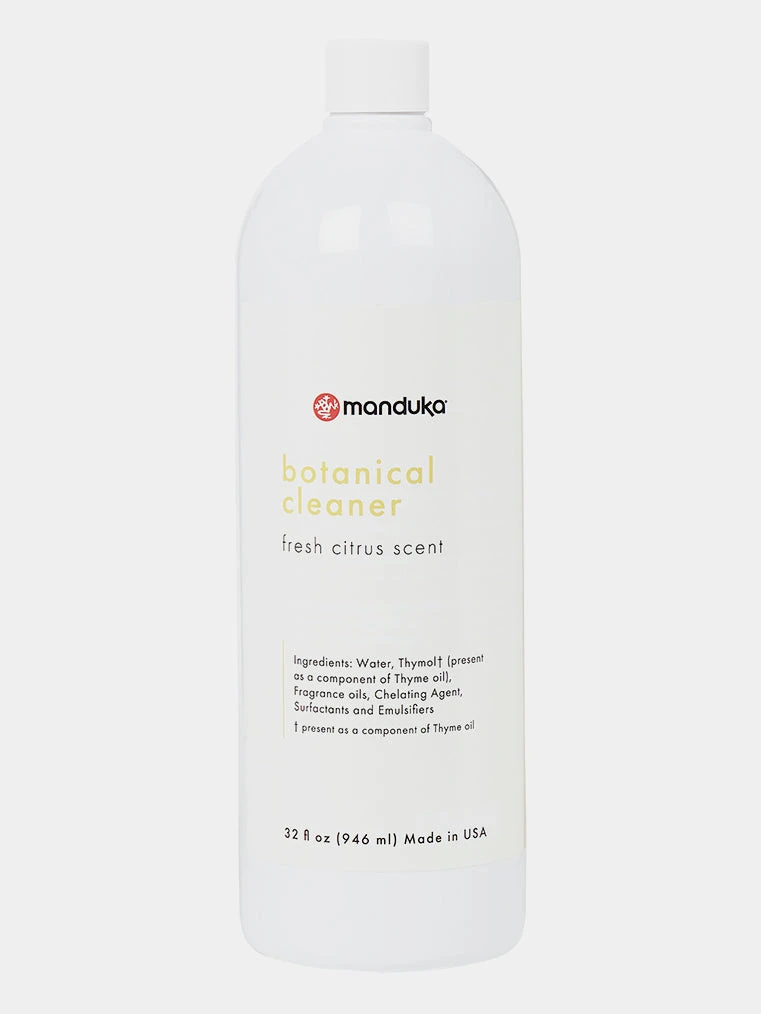 The Botanical Cleaner is safe for all mat types except the Manduka grp series (or any polyurethane mat), which is a porous (open-cell) surface. Use Botanical Cleaner as directed only on non-porous (closed-cell) surfaces. Visible soil must be removed before applying cleaning solution.