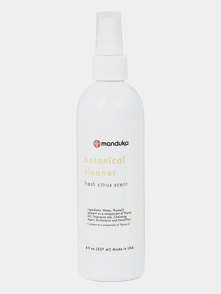 The Botanical Cleaner is safe for all mat types except the Manduka grp series (or any polyurethane mat), which is a porous (open-cell) surface. Use Botanical Cleaner as directed only on non-porous (closed-cell) surfaces. Visible soil must be removed before applying cleaning solution.