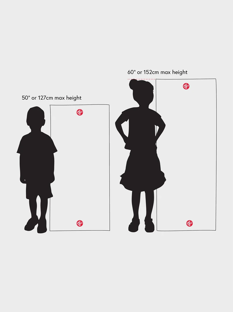 All the features of the Manduka PRO mat in a lightweight, foldable kids version. Thin and dense material, light enough for kids to carry and fold easily for storage.