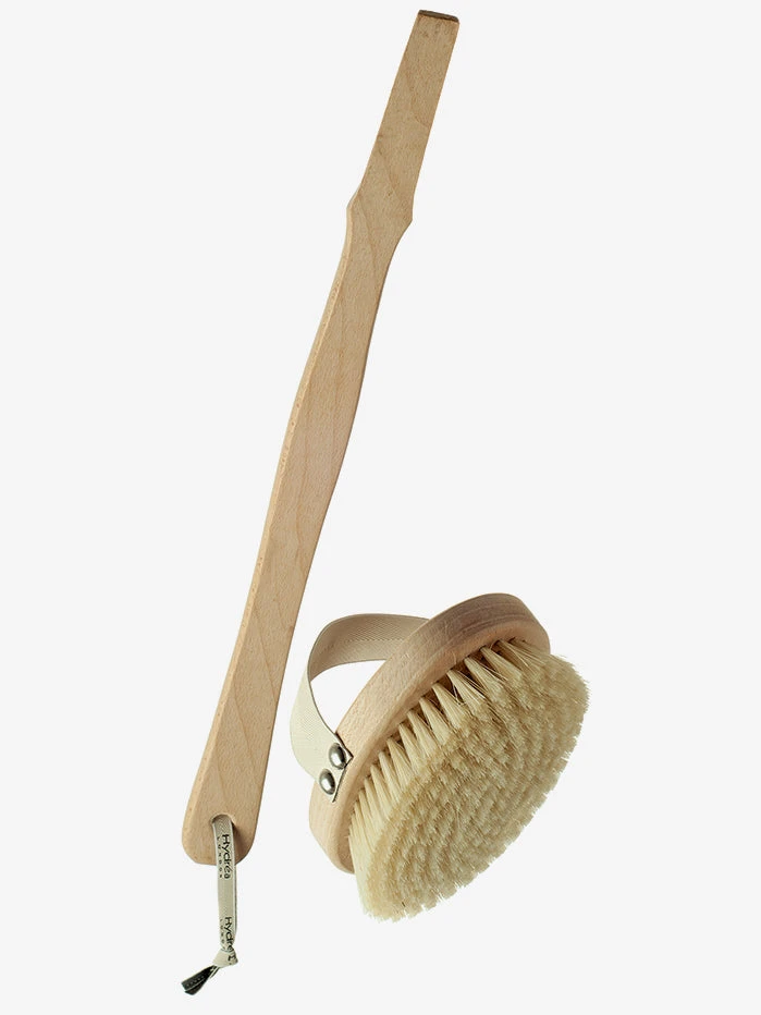 Perfect for wet body brushing or dry brushing more sensitive skin. Ergonomically designed with a long detachable handle for easy reach.Â
