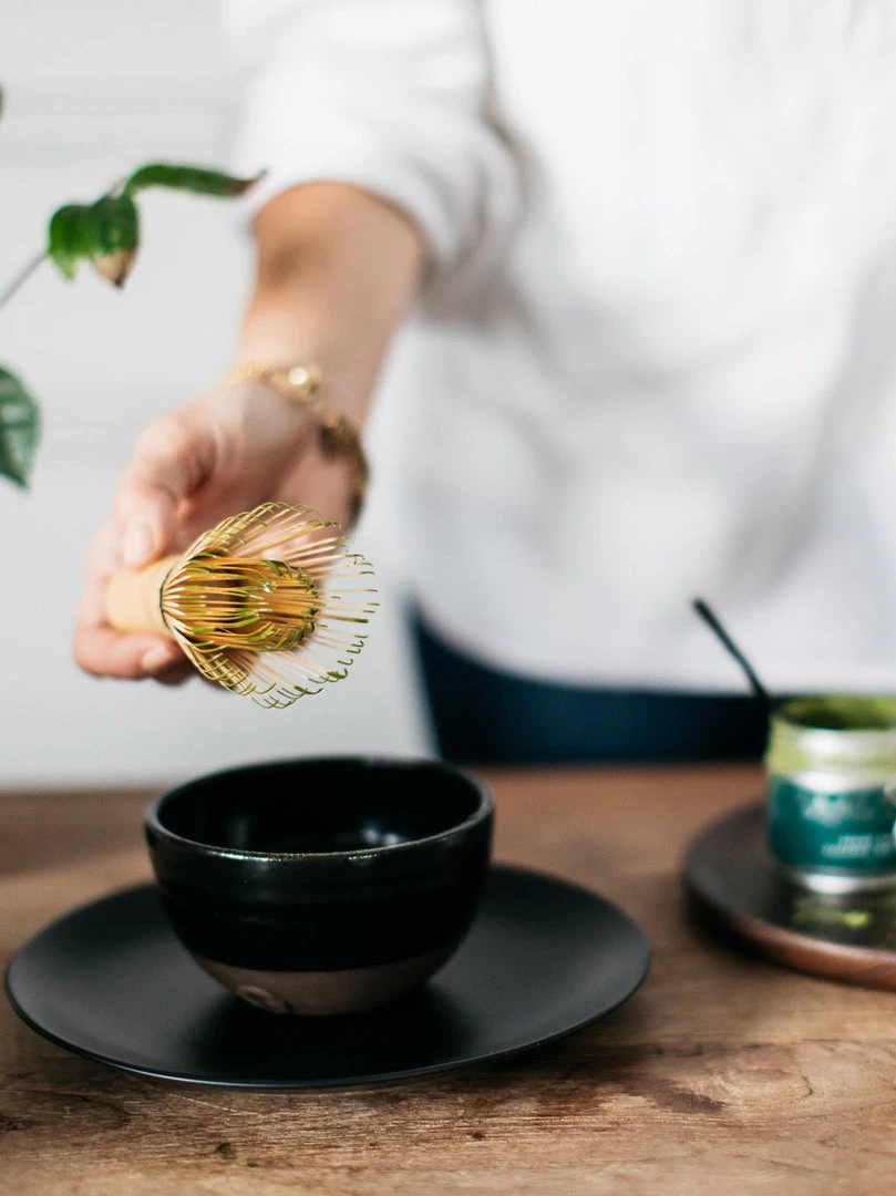 Place 1/2 heaped teaspoon of matcha into a mug or bowl. Add a few drops of 80℃ water and mix by tracing a ‘W’ pattern to create a paste. Add the remaining water and mix vigorously with the bamboo whisk by continuing to make the W pattern until a layer of foam forms at the surface.