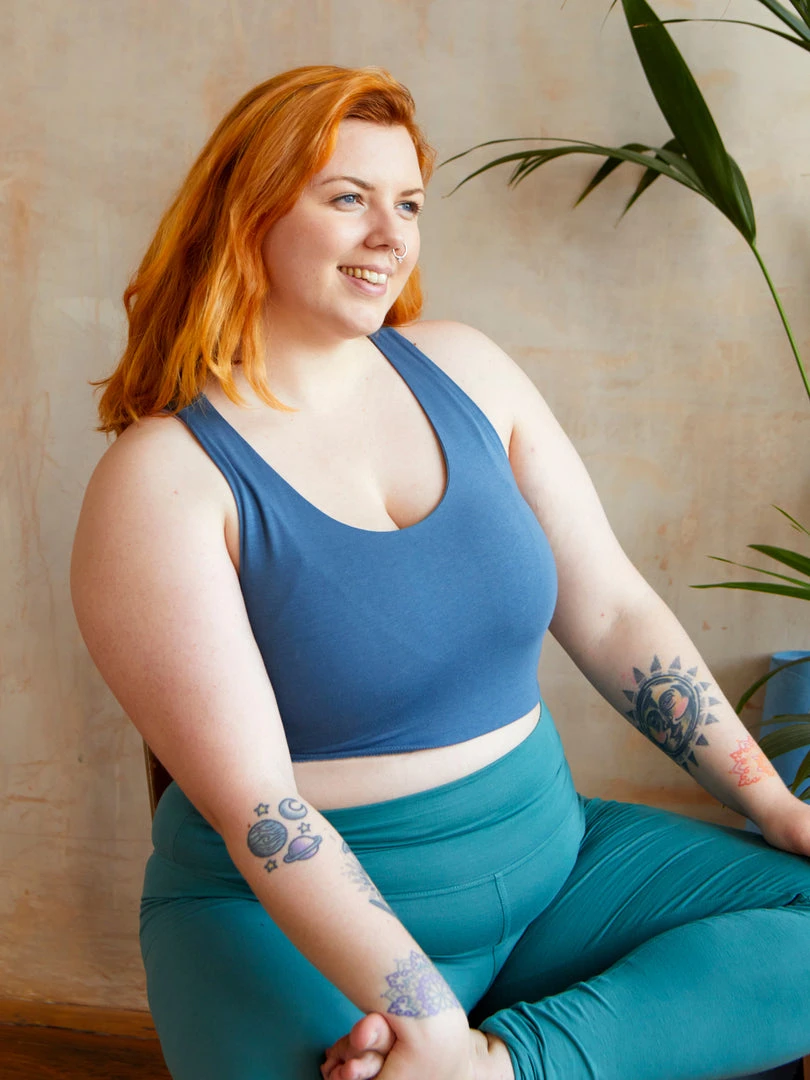 Our classic crop yoga top, made from a sumptuously soft blend of organic cotton & beechwood fibres is the perfect combination of coverage and comfort. Great for layering over a sports bra, our crop has a high scooped neckline to keep you covered where you want to be covered, whatever the asana.