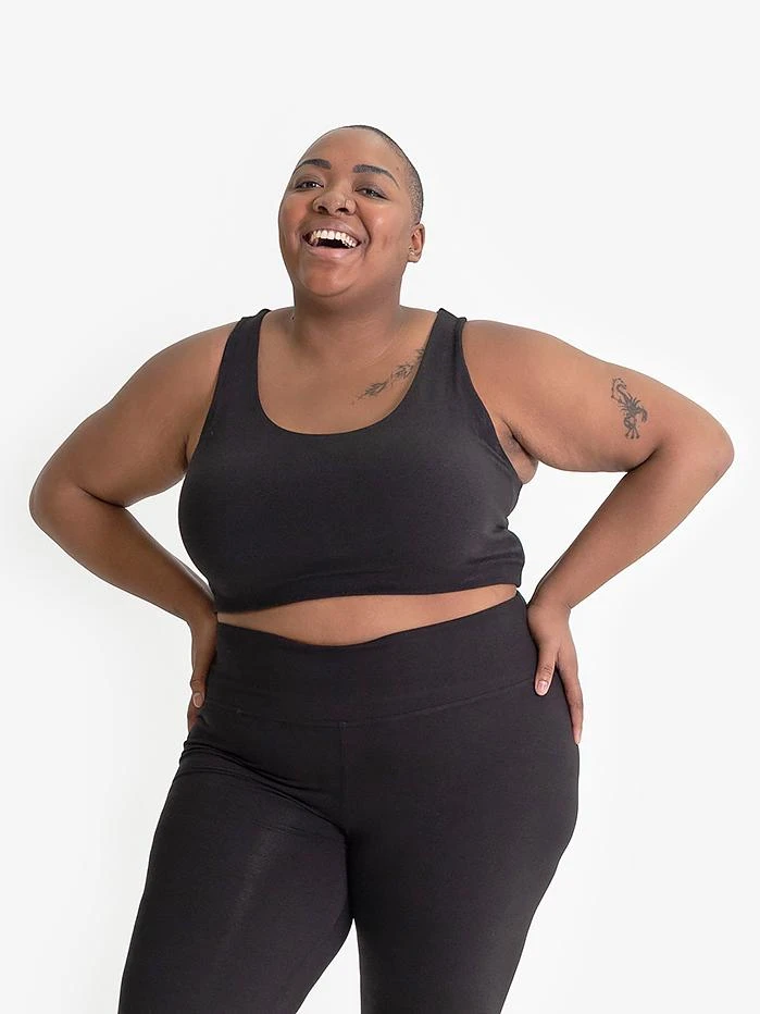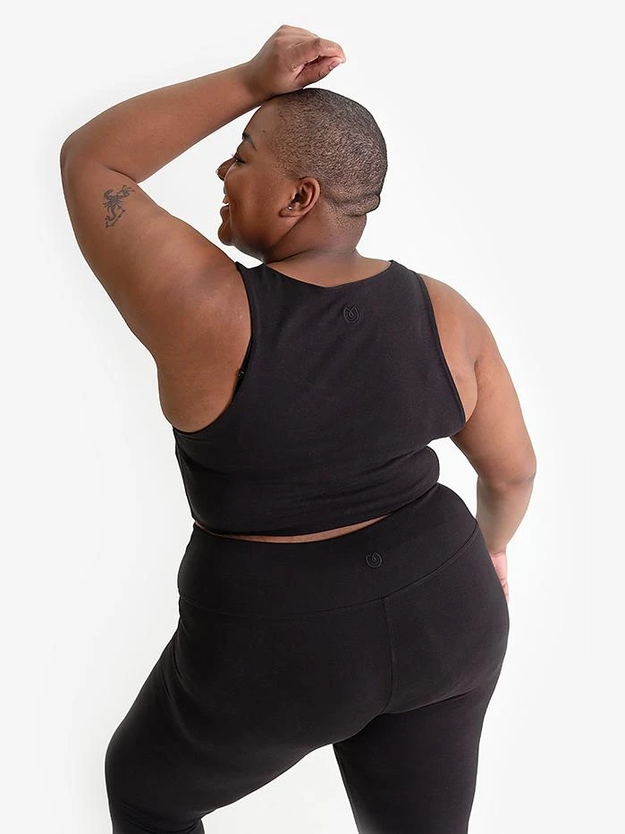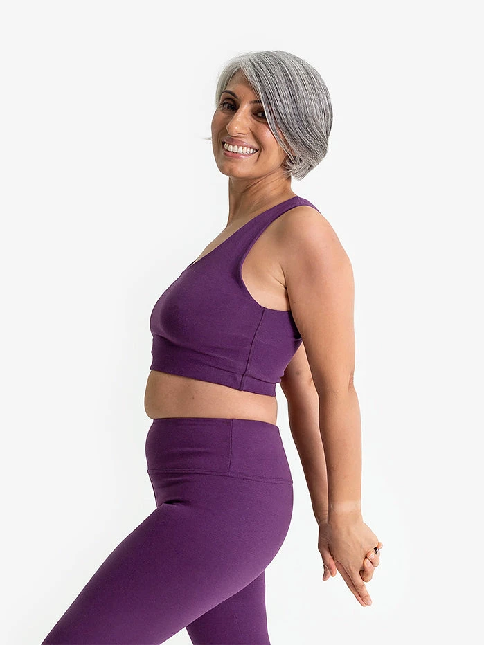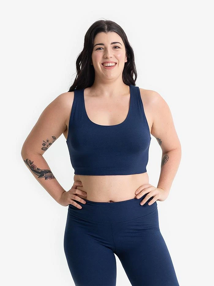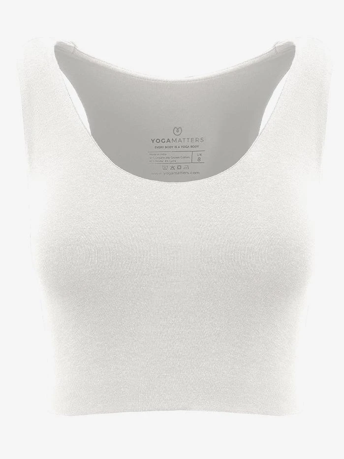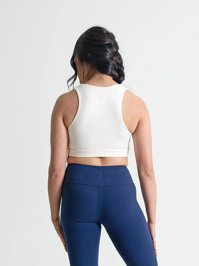 Our classic cropped yoga top is not a sports bra, providing more coverage, confidence and freedom for your practice. Perfect for layering, this cropped top fits lower on the ribs than a sports bra and has a higher scooped neckline to keep you covered where you want to be covered, whatever the asana.