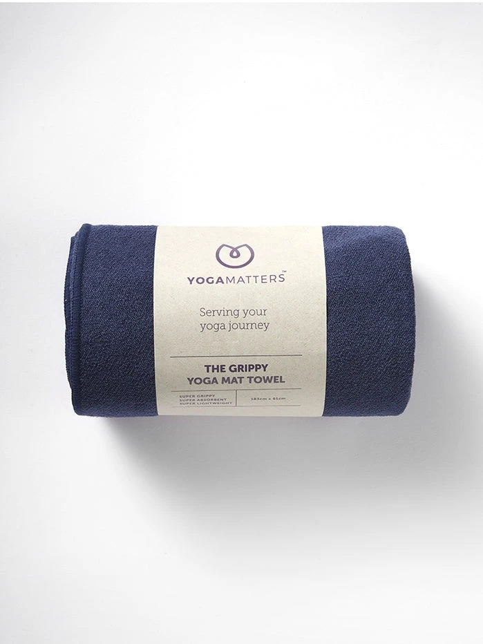 ‘The Grippy’ from Yogamatters is a soft and super absorbent yoga mat towel. Layer over a yoga mat during a hot yoga class with dots face down for a protective & hygienic layer or place directly onto the floor.Â