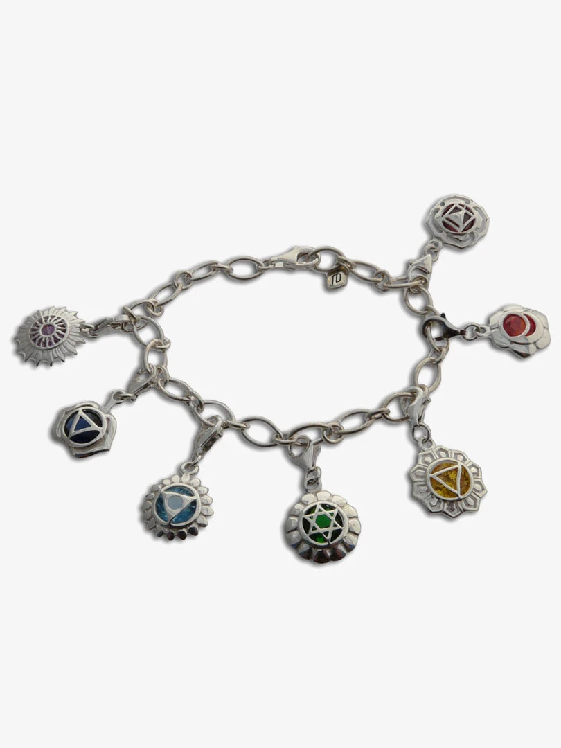 This charms on this adjustable sterling silver chakra charm bracelet represent each of the seven chakras and are 8mm in diameter. They have a spring clasp so you can easily change out the charms to wear them individually or in any combination.Â