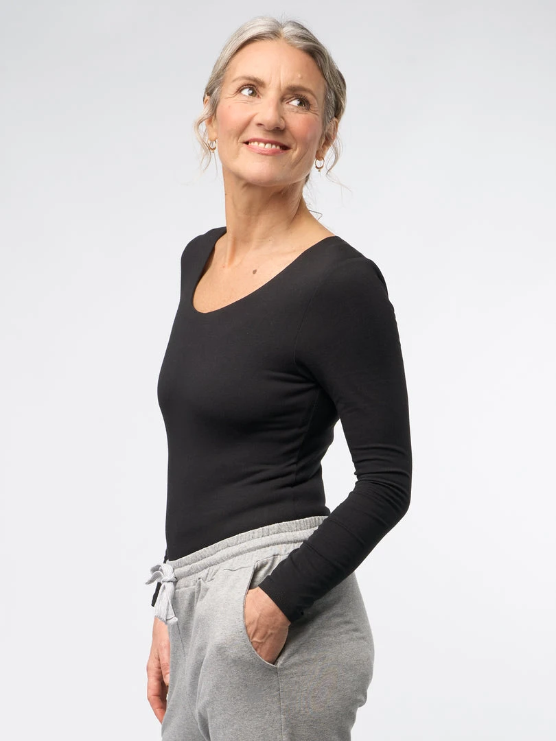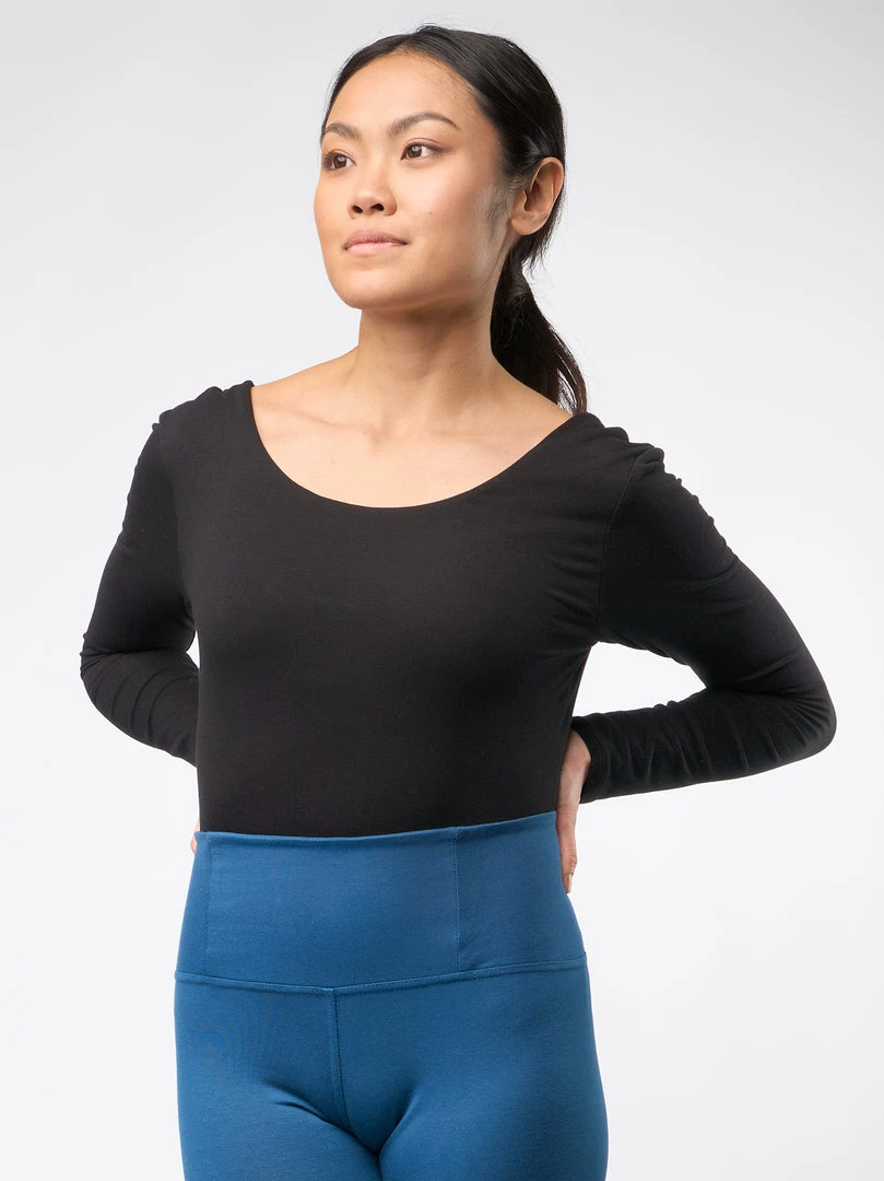 Take lighter steps with our dance inspired, Gossypium Scoop Long Sleeve Bodysuit. Made from a super soft premium and sustainable blend of organic cotton and natural beechwood fibre, this bodysuit hugs your figure beautifully.