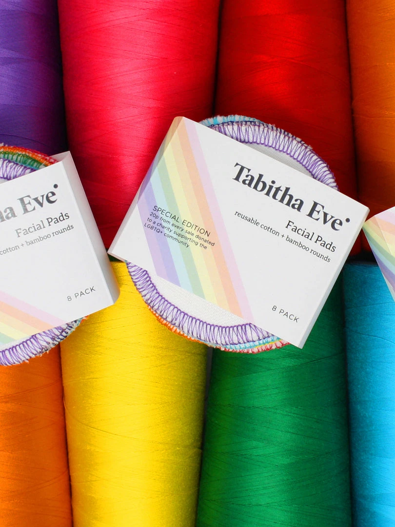Tabitha Eve has created a special PRIDE edition of eco-friendly cleansing pads. 20p from every sale will be donated to a charity supporting the LGBTQ+ community! Get your hands on sustainable beauty routines with these reusable facial pads, ideal for removing make up or applying toner. Sustainably made from organic cotton and bamboo. Bamboo is naturally antibacterial and antimicrobial, and gentle enough for even the most sensitive skin. These pads will feel silky soft on your skin without any nasties.