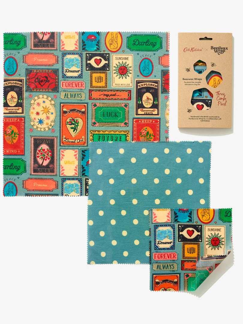 Designed by Cath Kidston and available in the bestselling pack sizes, these beeswax wraps include two gorgeous prints; affirmations and classic denim blue spot.