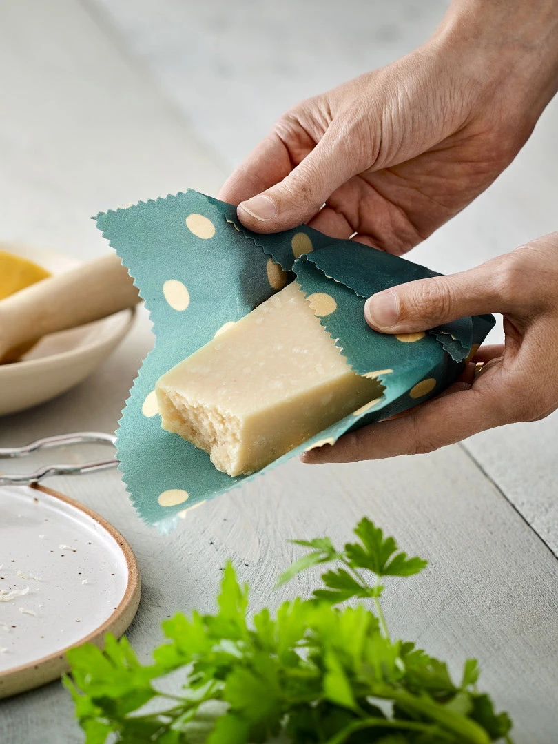 Handmade in the British countryside, these Cath Kidston wax wraps are crafted from organic cotton, locally sourced British beeswax, pine resin and organic jojoba oil, with GOTS certified organic cotton and organic dyes. A long-lasting and planet-friendly alternative to cling film.