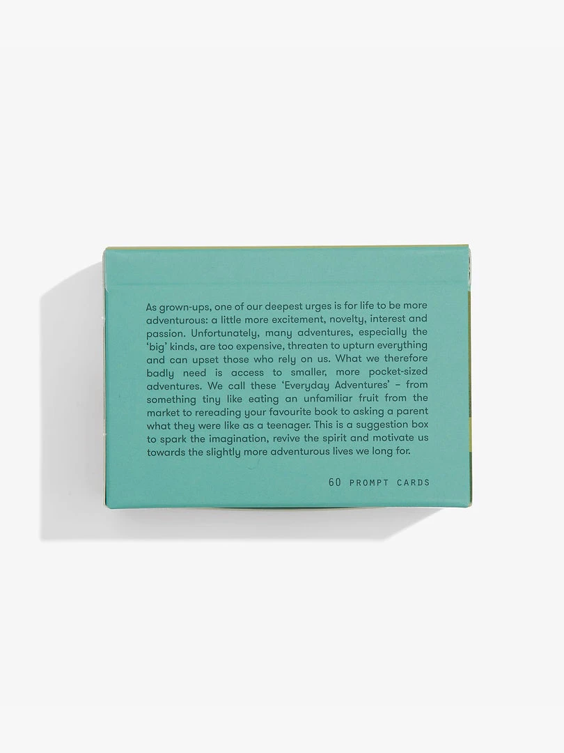 60 cards containing prompts and suggestions for a more exciting life through pocket-sized adventures.