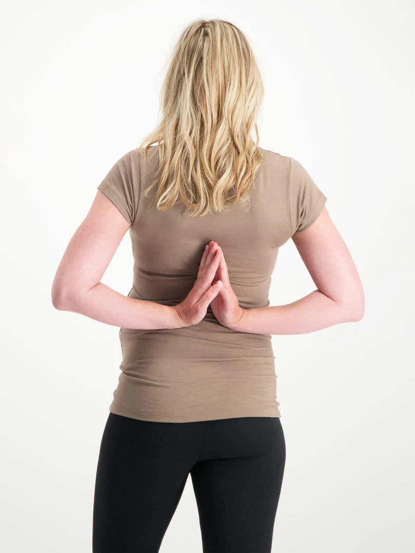 Style your new curves with this great basic T-shirt made with GOTS certified organic cotton and bamboo. A classic basic perfect for layering, making sure your growing belly stays nice and warm. Or wear as it is for your pregnancy yoga class.