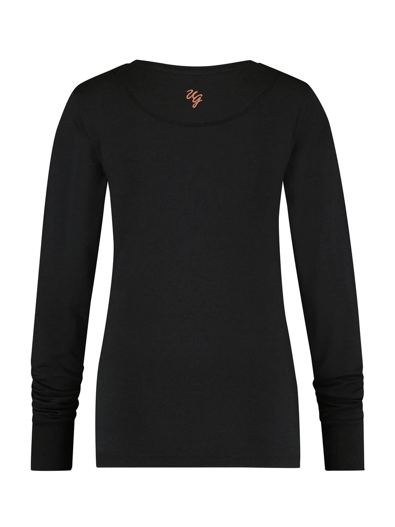 The Urban Goddess Karuna longsleeve yoga shirt comes with a longer length, it’s made from 68% bamboo and 28% organic cotton. This eco-friendly fabrix mix makes the shirt feel super soft and breathable on your skin.