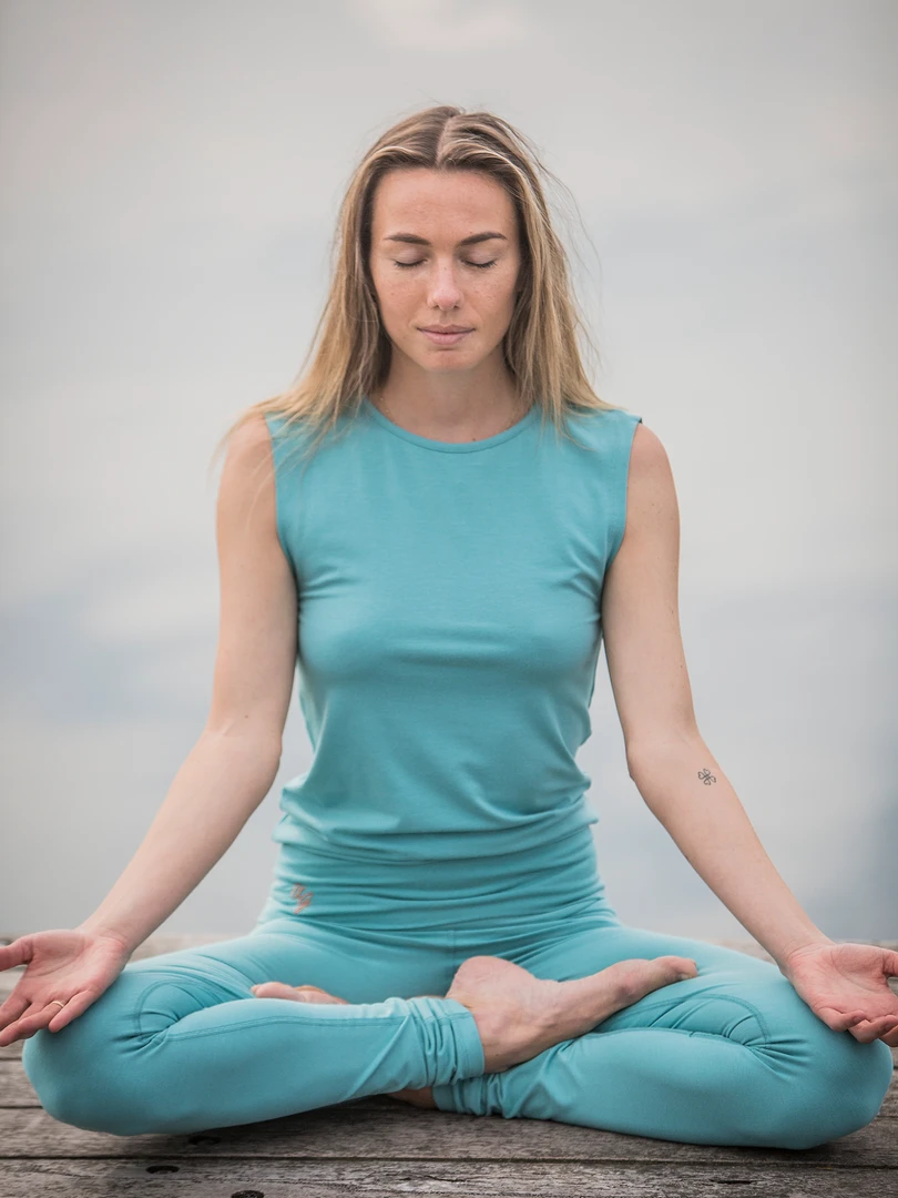This sustainable yoga top also has extra large armholes, so that you will never ever feel restricted in any asana during your yoga practice. Stretch any way you like! The backside of the Bhav yoga top features a nice open back detail, giving this top a little extra something.