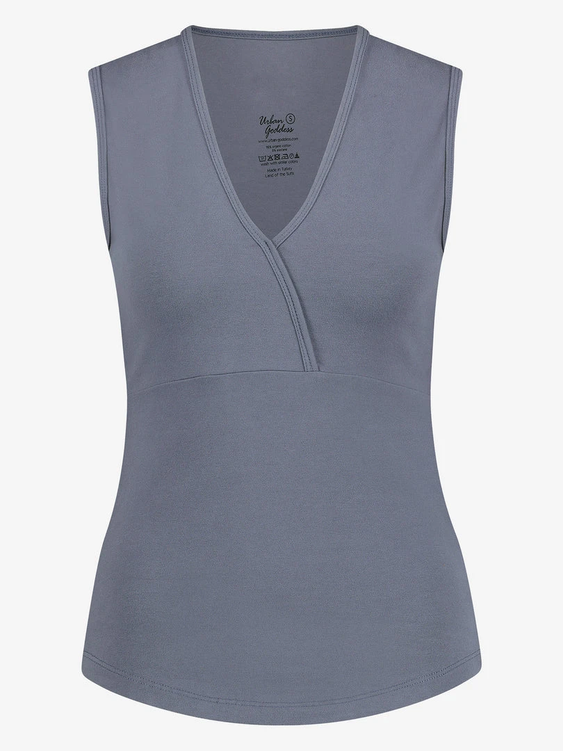 The Urban Goddess Namaste Yoga Top is a beautiful top made of sustainable material with a modern design.