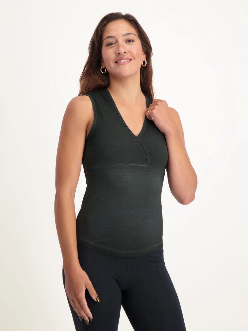This yoga top features a wrap style in the front – it works well for different cup sizes with the pleats allowing for a larger cup, or optically adding a little volume to a smaller cup size. It’s also versatile enough for both on and off the mat – style it up with some accessories for a little glamour or go for a simple, elegant look.