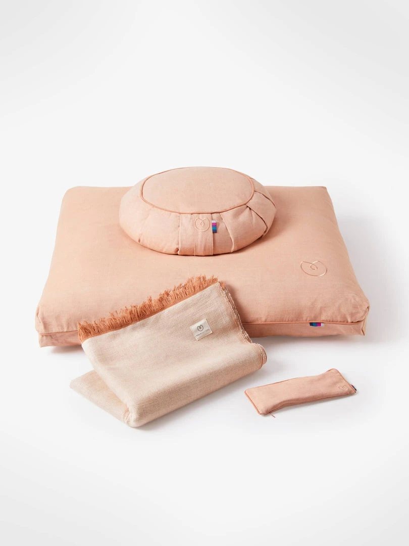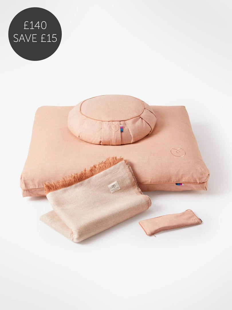 Create a calming space at home with our indulgent set of meditation props made from 100% organic cotton making moments of meditation and reflection that much easier.