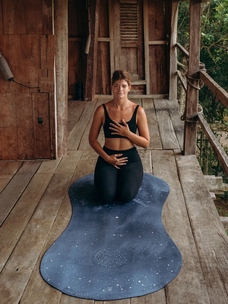 Ideal for hot yoga, any dynamic sweaty practice, Pilates and general exercise. Luxurious and absorbent sueded microfibre (made of recycled plastic bottles) bonded to a natural tree rubber base gives you the wet grip of a towel (that grips better the more you sweat) with the cushion of a yoga mat and a responsive grip to reduce injuries. You’ll no longer need to bring a mat and towel to yoga class anymore!