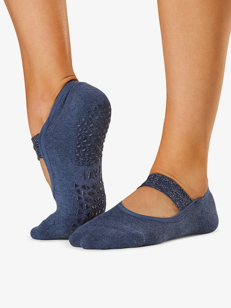These Tavi Noir Lola Grip Socks now with a single mesh band that falls across the top of the foot. Her low design hugs the foot just below the ankle while Tavi’s stellar grip sock pattern safely moves you through your barre, pilates and yoga classes.